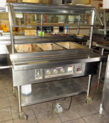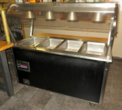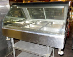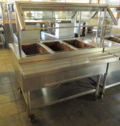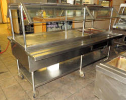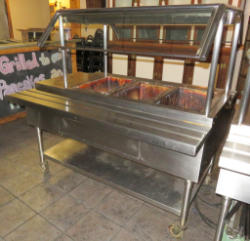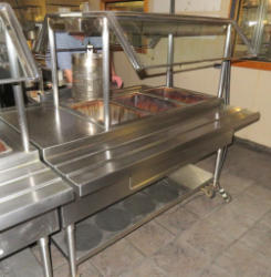 double sided serving; 3-compartment; stainless steel; nice condition; work; 60"x48"x60"; glass sneeze guards