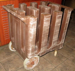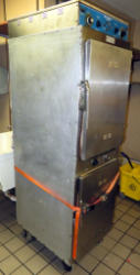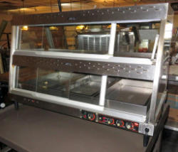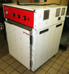 will warm but won't cook; bottom unit does not function; on wheels; 23"x30"x77"