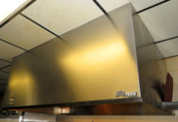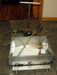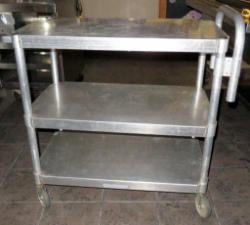 needs some work to the hood and knobs; all stainless; on wheels; 24"x34"x57"