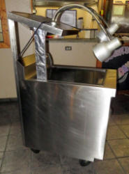 great condition; like new; folding cutting board on front; rear sliding door; 40"x44"x30"; this came out of the Fox Stop gas station; rolling cart underneath does not go with it