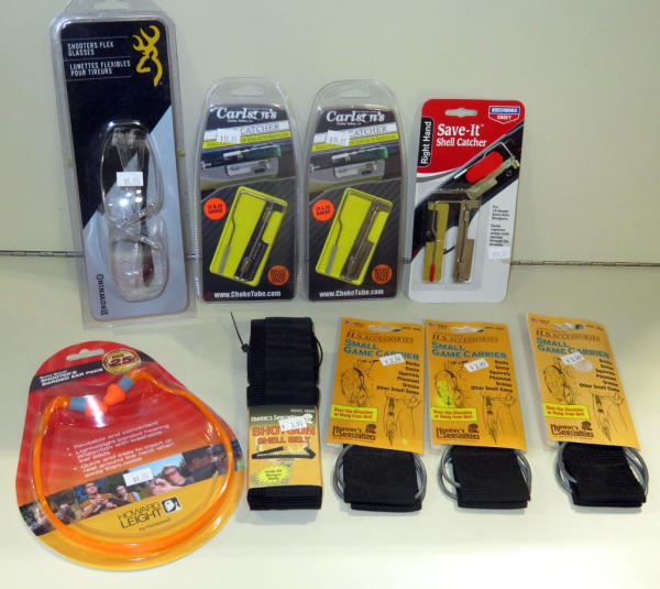 Shell Catchers; Glasses; Ear Pads; Shell Belt & Game Carriers; all new; sell for one money