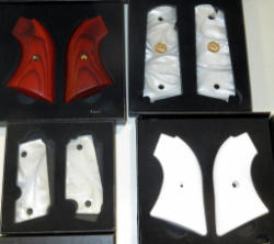 the one set of 1911 are cracked, receiving those as a bonus; two are for revolvers and other is a small pistol; all different; sell 3x the money