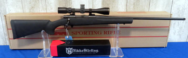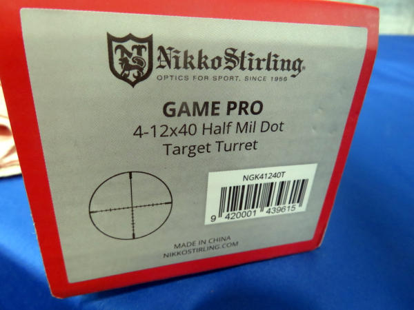 NIB; 24" threaded BBL; Nikko Stirling GamePro 4-12x40 Half Mil Dot scope & box; black rubberized stock; SN#B635135