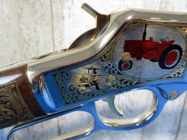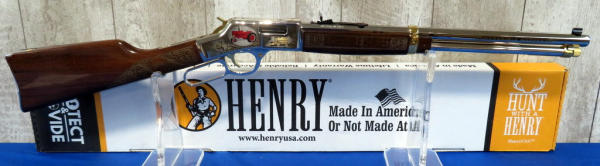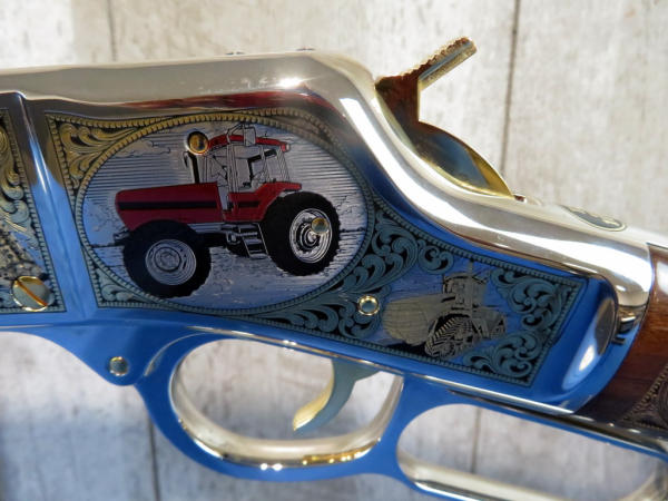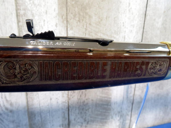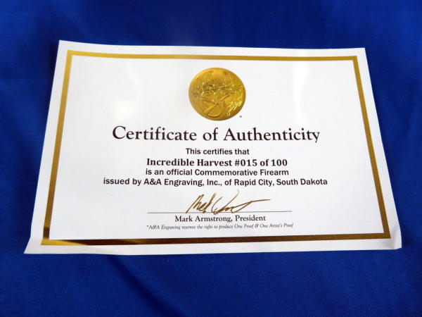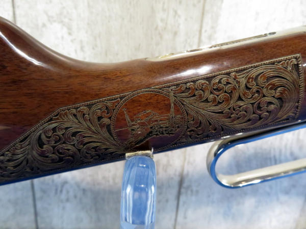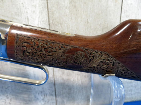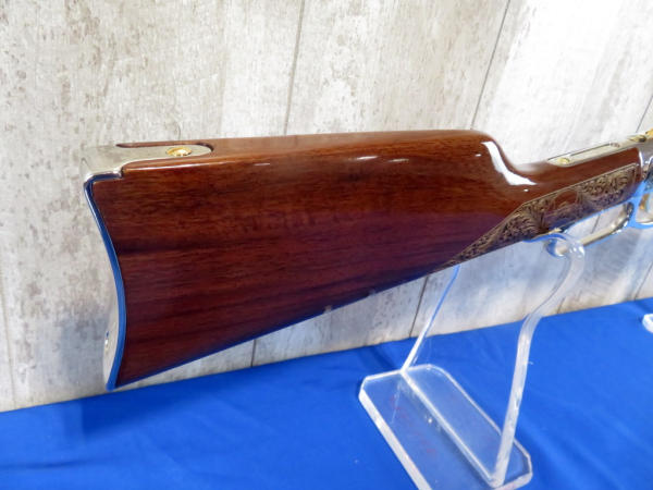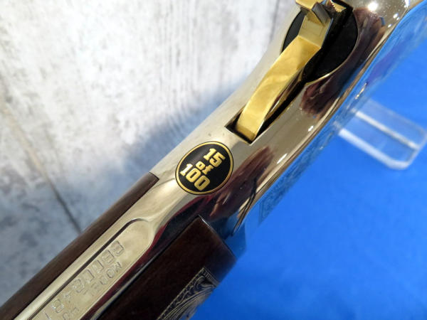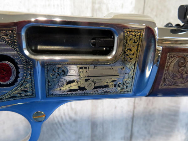 Beautifully engraved by A&A Engraving; Left side Vintage Equip & Right Side Modern; Nickel Finish with gold inlay; 19.5" Oct. Barrel; original box & COA; SN#BB0084814C