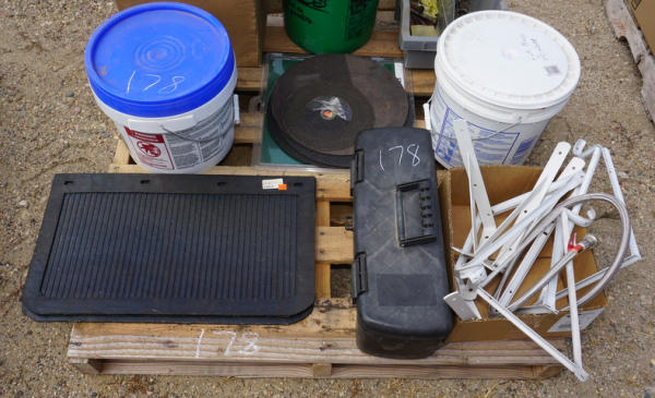 cut-off wheels, tool box, shelf brackets, mud flaps, electrical supplies, dust control, all to go