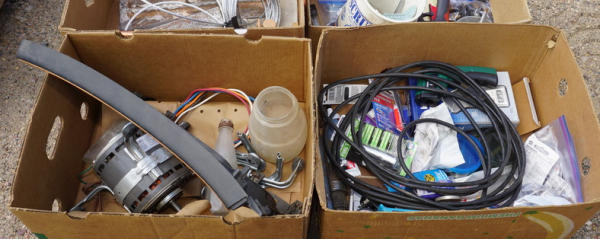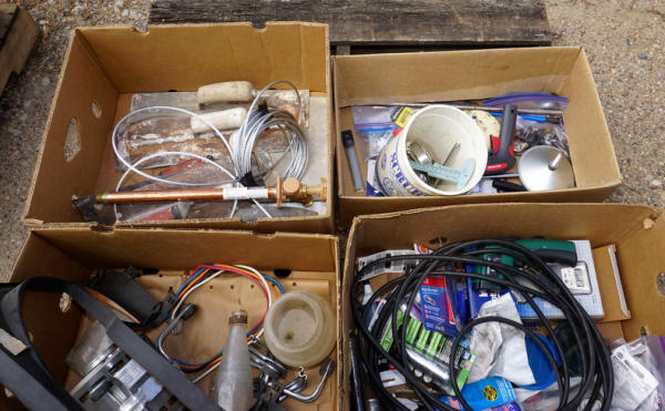 Cornwell light, hitch pin, caliper, bearing greaser, trowels, alternator, ATG