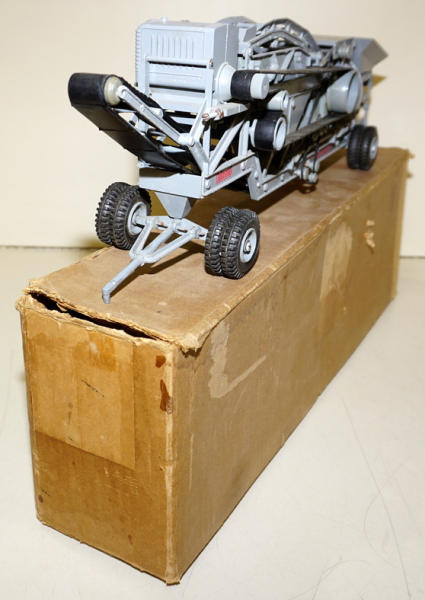 paint is 95% or better, belts are broken or missing which is common for this toy; box is correct original box, but is not marked "Pitmaster" like others we have sold, box has some normal wear, another rare toy