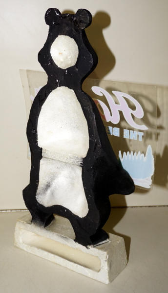 20" tall, has some general wear, black part might have been repainted, sign is a little faded and has a few small cracks