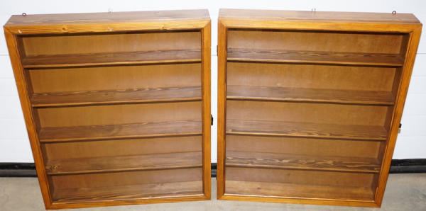 each 26"x30"x5", has 5 non-adjustable shelves, both nice, no shipping, 2x the money