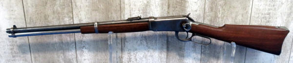 20" BBL; full length receiver tube; action catches alittle; bluing is thin, looks like it was buffed out at one time; wood is extremely nice; saddle ring; SN#782082