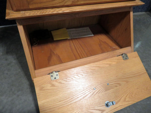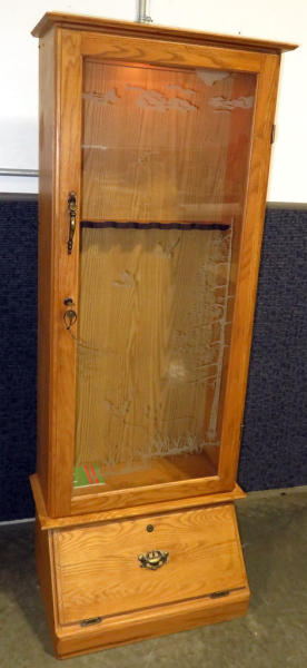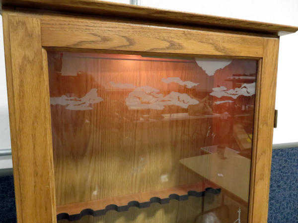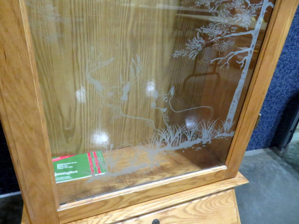 very nice; Deer & Duck scene frosted glass; 67" tall; has key; lights; NO SHIPPING