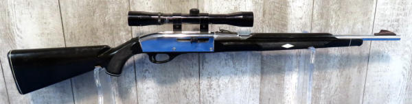 19.5" chrome barrel; black stock w/white diamonds; Bushnell 4x32 scope; has a few storage marks but overall very nice; SN#A2203291