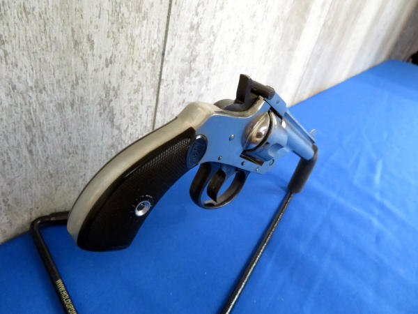 not positive on caliber, but I believe it to be .32 S&W Short; cylinder will not lock; 3" Stainless barrel; checkered grips; SN#2920