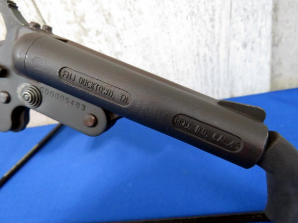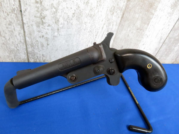 3.75" BBL; easy break action; looks like new; bird's head grip; spur trigger; only marked .45cal but owner said it works w/.410ga too; canvas holster; SN#C00005483