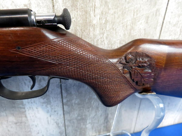 27" BBL; smooth action; checkered stock w/custom leaf etched on both sides; mfg.1956; no SN#