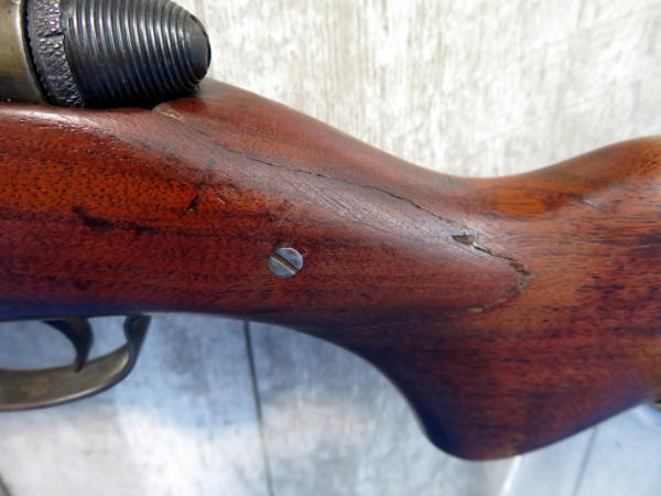 24" BBL; wood has good color; stock has been repaired on left side behind trigger; bluing thin; no SN#