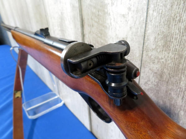 factory rear folding target sight; 26" BBL; leather sling; wood is solid; no SN#