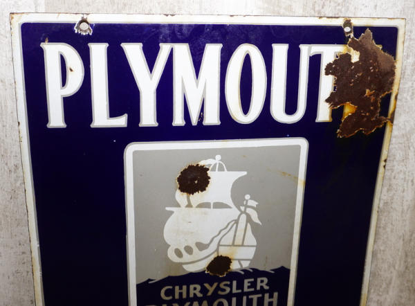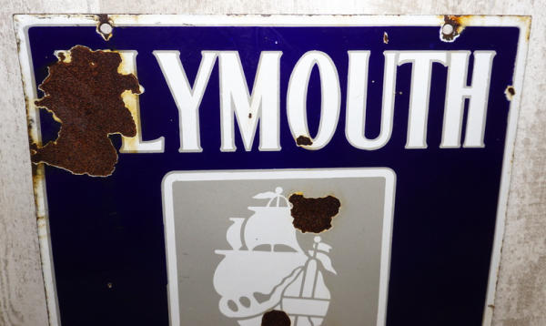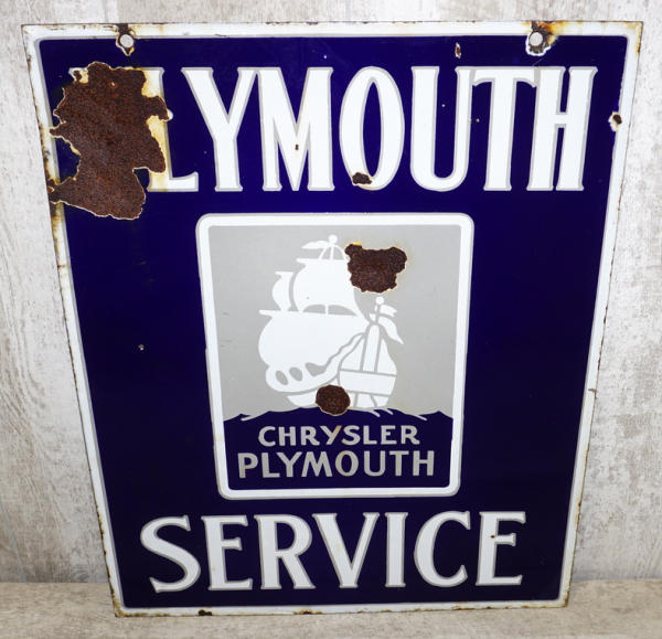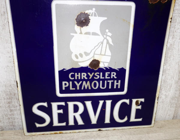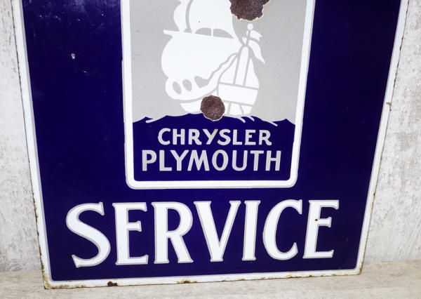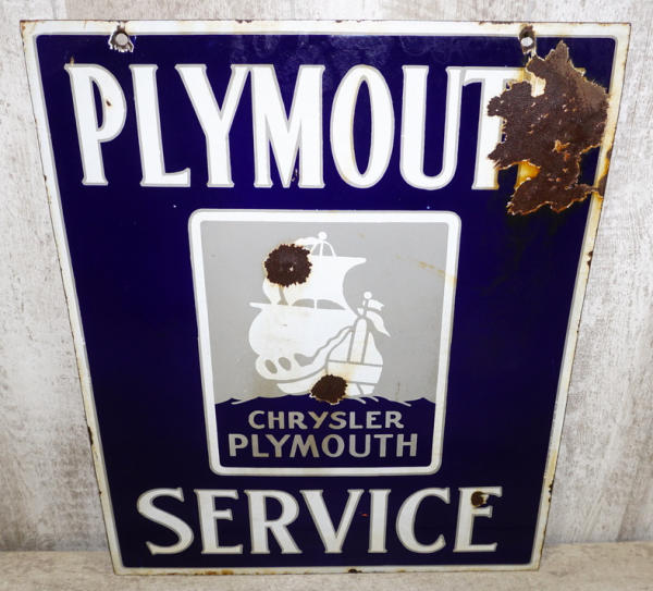 22"x18", large chip in the top corner on both sides and two large chips over the log, rates 7 condition overall; hard sign to find, but not great condition