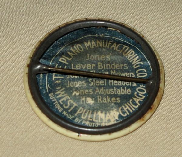 1.5" across, nice original, has paper on back side with advertising