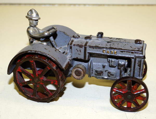 very nice original, grey paint is about 80% condition; red on the wheels is about 50%, original driver, nice piece of cast iron