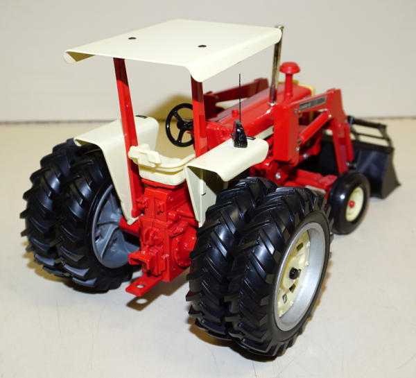 Ertl tractor customized, plastic parts have yellowed with age, radio added, grapple scratch built
