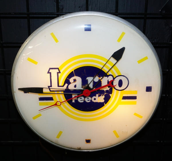 15" face, lights up, will run, needs some help to start, has some flaking to the printing on the face and colors are a little faded