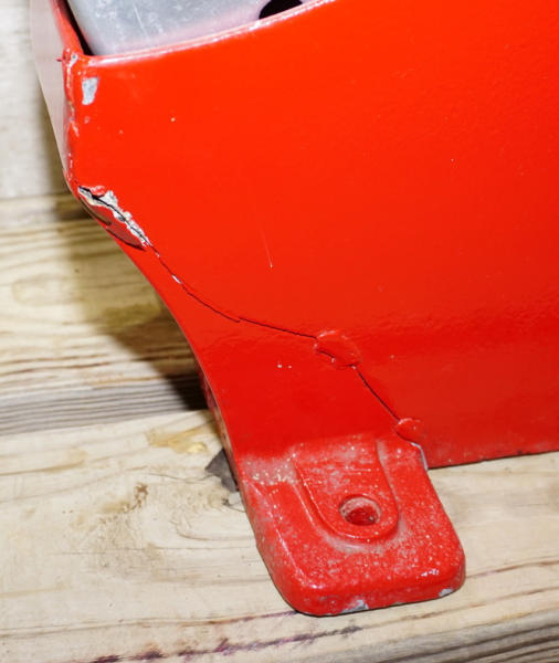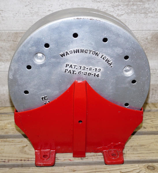 18" wheel, great lettering on both sides, base has a large crack that has been poorly repaired and a foot on the other side that has been poorly repaired; displays fine, but does have damage; wheel is good