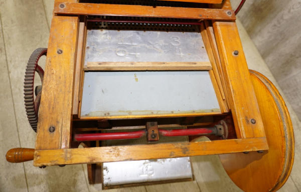 Great original, nice small size, 30" long, 18" wide, about 23" tall, really clean and nice original; these small size ones were used in nurseries to separate flower seed