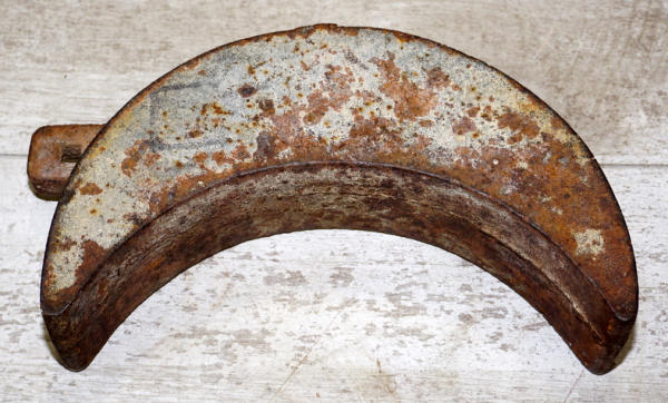 10.5" long, 2.75" thick, barn find original; considered a "Dry Moon" with the points pointing down, only used for a short time, owners believed it was bad luck on their farm!