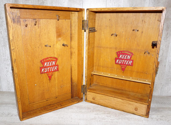 18"x27"x9", great original logos inside, drawer inside has been replaced, no tools included, nice cabinet