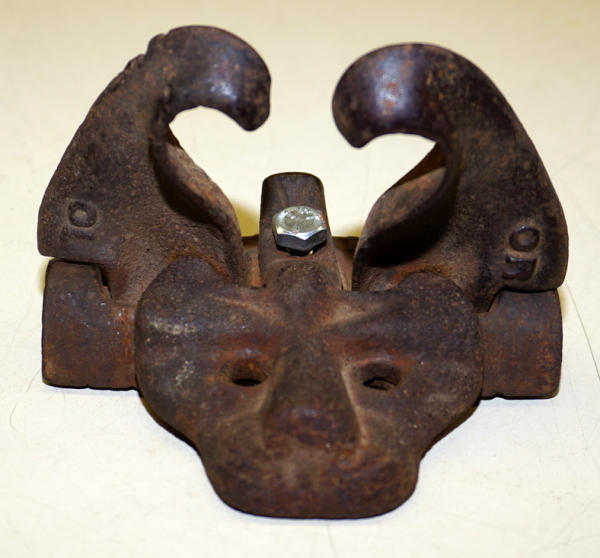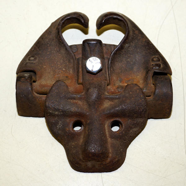 about 5"x5.5", new bolt holding it together, otherwise nice original, neat piece