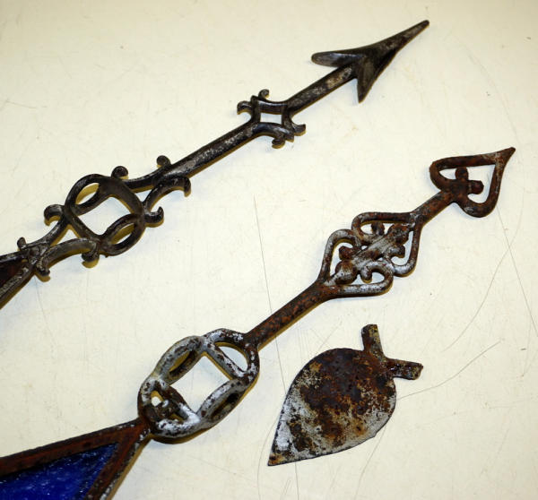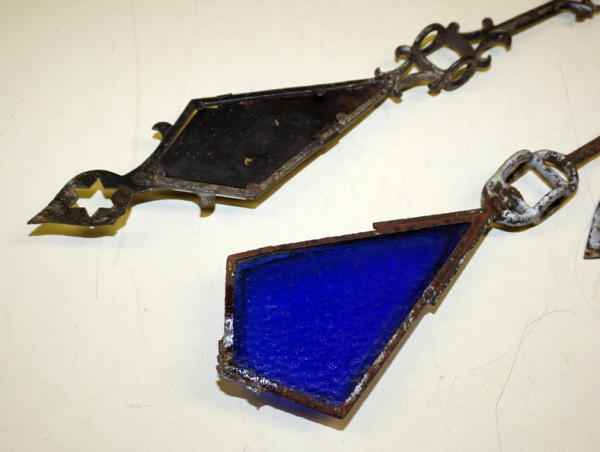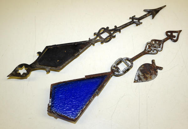 largest is 21" long, glass tail replaced with a piece of metal; Blue Tail has the end broken off, looks like it was attempted to be repaired once, sells 2x the money