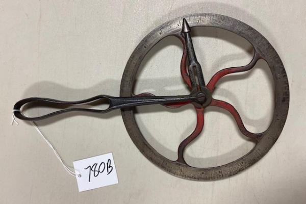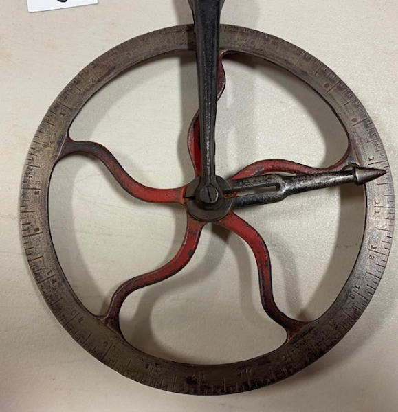 13" long, 8" wheel, nice original paint, don't see a maker's mark