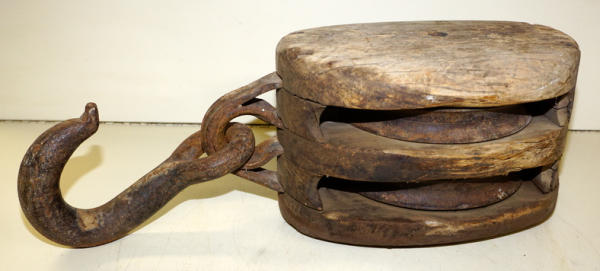 about 22" long, 9" wide and 7" thick, old original, heavy cast iron hook