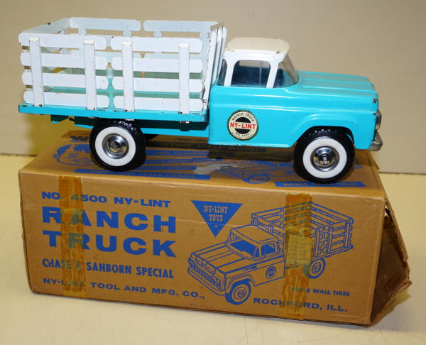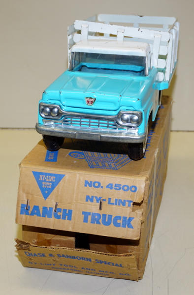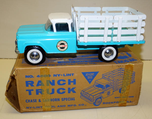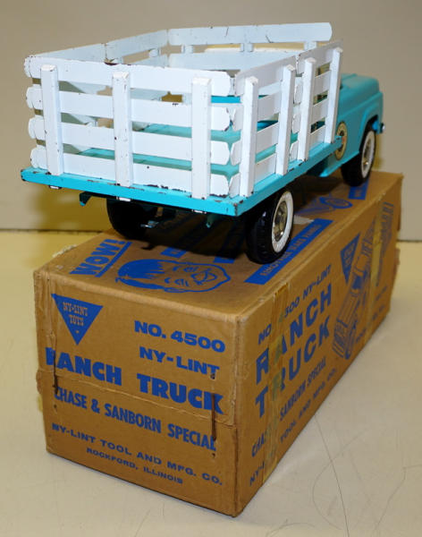 Truck has some play wear, rates 90% condition; Box is square, has some packing tape marks and general wear, rates 8.5 condition
