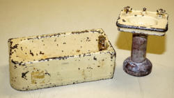 #800 - (2x) Arcade Cast Iron Doll House Toys--Bathtub & Pedestal Sink