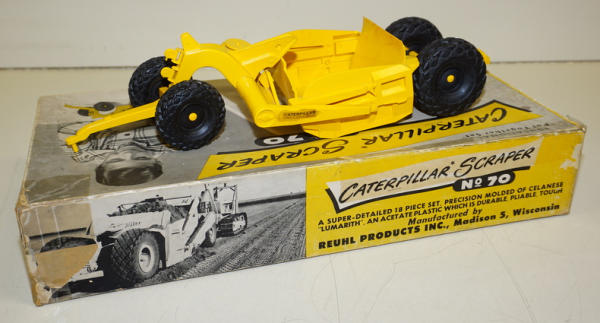 Super rare original toy, same size as the diecast scraper, but a hard plastic; super graphic box, but has quite a bit of tape on the corners; another super rare Reuhl toy!