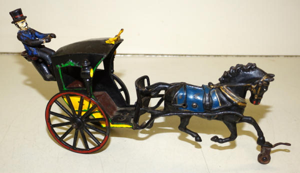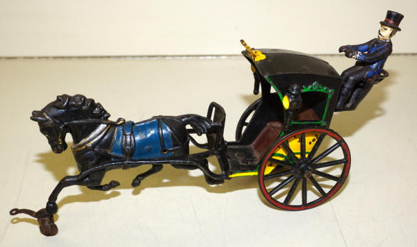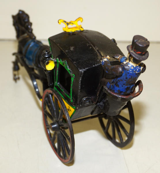 about 13" long, original paint is about 80%; no lady rider inside, just the driver