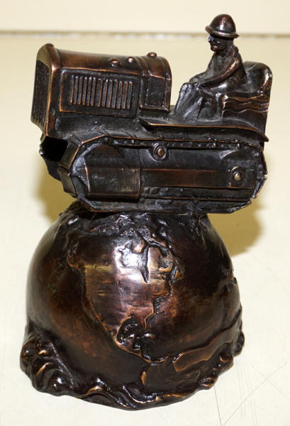 6" tall, great original antique copper finish; this is the version that does not have "Caterpillar" on it, nice piece