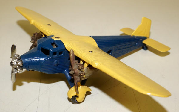10.5" long, 14" long, good older repaint, front prop & engine is a replacement, large & impressive