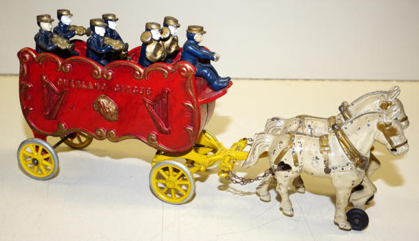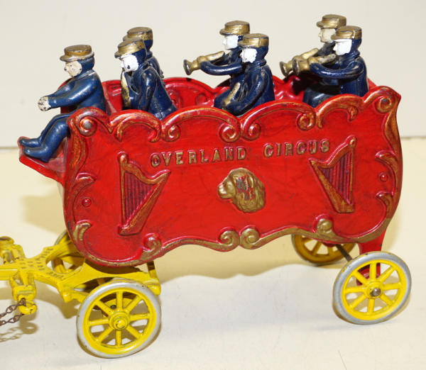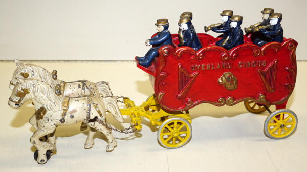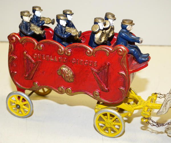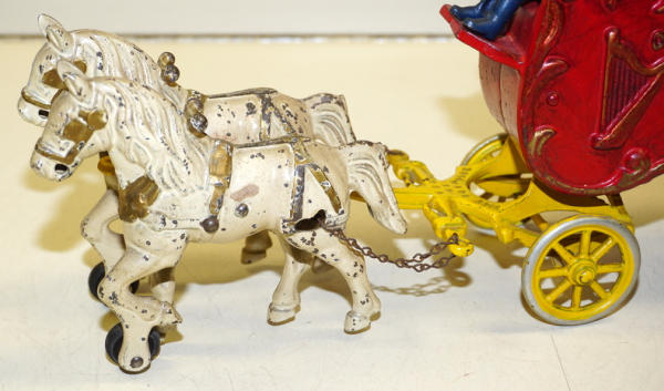 16" long, riders are all cast iron, looks like an old repaint that was aged, large & impressive piece of cast iron