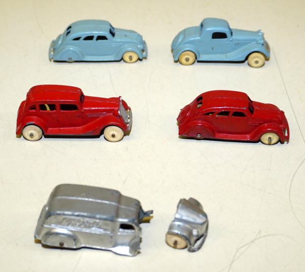 all about 3" long, 4 are nice, one has a front end broken off, but it is there and repairable, all to go