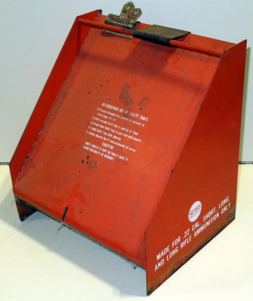 used to hang paper targets and shoot .22cal at it; all steel and catches the bullets; used