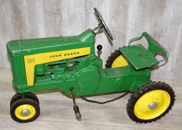 another pretty decent original paint tractor, 75% or so, some one started to take it apart to restore it, so it's missing the original bolts holding the casting together; needs a few parts like pedals and hubcaps, but a little TLC and you'll have a pretty good original