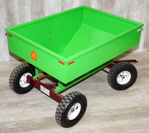 air tires, heavy steel frame, steel welded box, box is 33" long, 22" tall overall, built so a kid can play hard with it