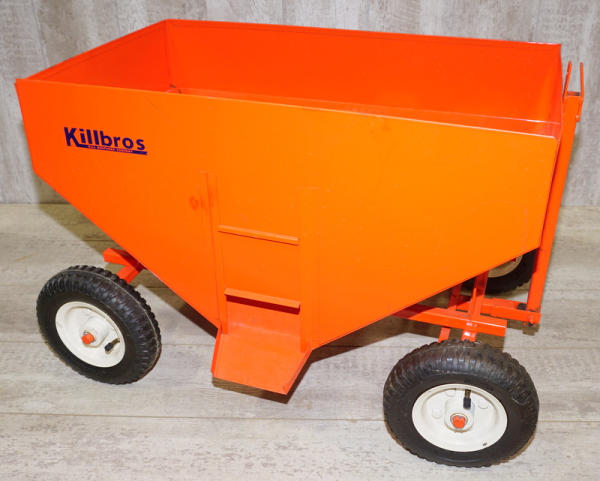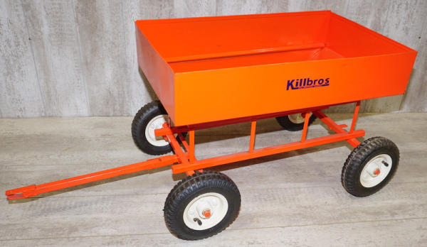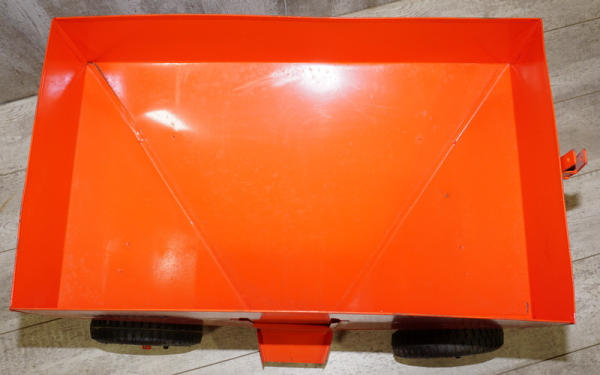28" long, 16" wide 19" tall, all steel, nicely built, air tires, has some chips and light wear to the edges