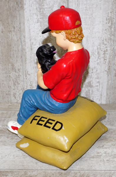 18" tall, some paint flaking on the bags, has been displayed, Resin cast, no box, no shipping
