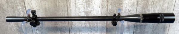 24" long w/2" sunshade; mounts; fine crosshairs; clear; metal screw in lens caps; nice