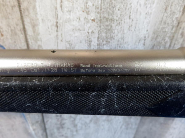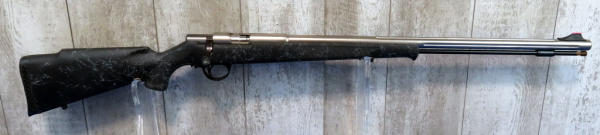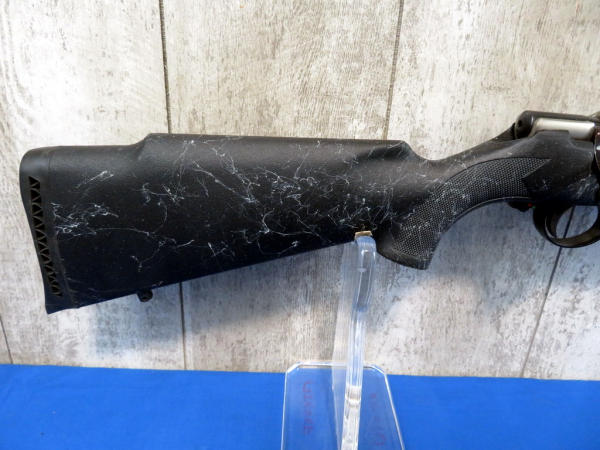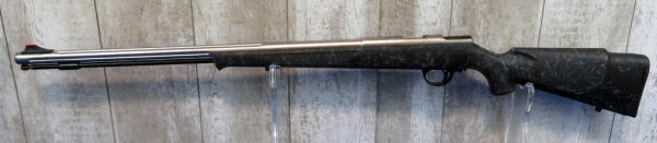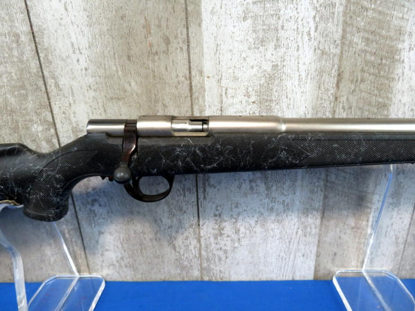 26" Fluted Stainless Barrel; black synthetic stock w/splatter paint design; has some spotting on barrel; drilled and tapped; no transfer needed; SN#61-13-21641-02
