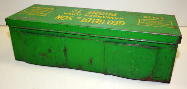 decent original, latch is broken and extra decal was added to the front, advertising top is pretty good